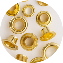 Every eyelet is made in-house to high quality standards, with a range of plating finishes available to suit your product or application. When dealing with industrial fabrics, layered textiles or reinforced materials, we can supply standard sizes or develop a bespoke solution tailored to your needs. Available in 8ml - 19ml internal diameters.